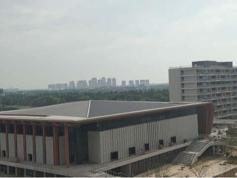 二零二五年六月。截至目前,校区工程建设总进度约96%。①基建部分:所有楼宇幕墙已施工完成;校区整体绿化进入收尾;四栋宿舍正在进行踢脚线和晾衣杆安装;食堂后场厨具安装完成,燃气管道安装完成;体育馆看台区域地面PVC铺贴完成,进地面边角压条安装;5栋实验楼正在进行公区内装收尾。②实验室专项部分:3#临床实验实训楼楼层内配电箱安装完成,电缆敷设完成,照明,空调电气配管,插座配管,电线敷设完成85%;4#基础实验实训楼钢质门、洁净门安装完成,铝扣板吊顶完成95%,二、三、四水泥自流平完成,地下室墙、地砖完成,开关、插座完成95%;5#医工结合楼楼层内配电箱安装完成,电缆敷设完成,一至四层腻子粉,涂料完成,二至四层铝扣板安装完成,给排水管安装完成。6#产教研发楼二至五层洁净区房间灯具线管敷设完成,穿线完成95%,灯具安装完成90%,一层洁净墙板安装完成85%,一至五层净化机房吸声板墙面全部完成;③智能化专项部分:四栋宿舍内部网络调试完成;7#综合楼、8#体育馆监控设备调试完成;9#大学生活动中心监控设备安装完成;2#教学楼一至五层电子时钟安装完成。